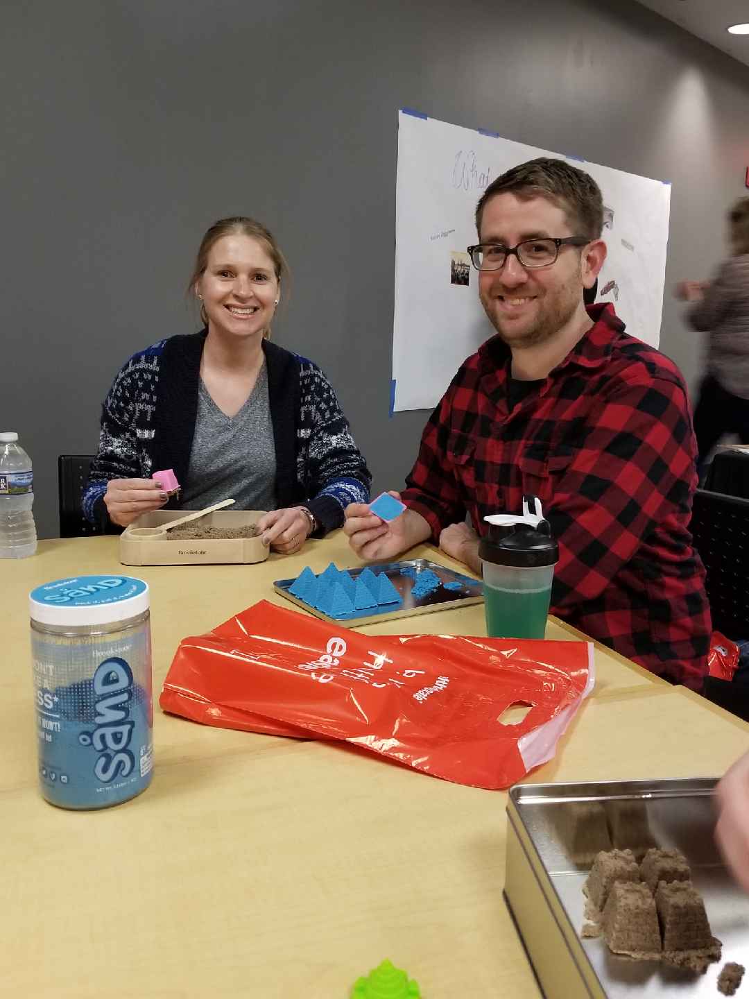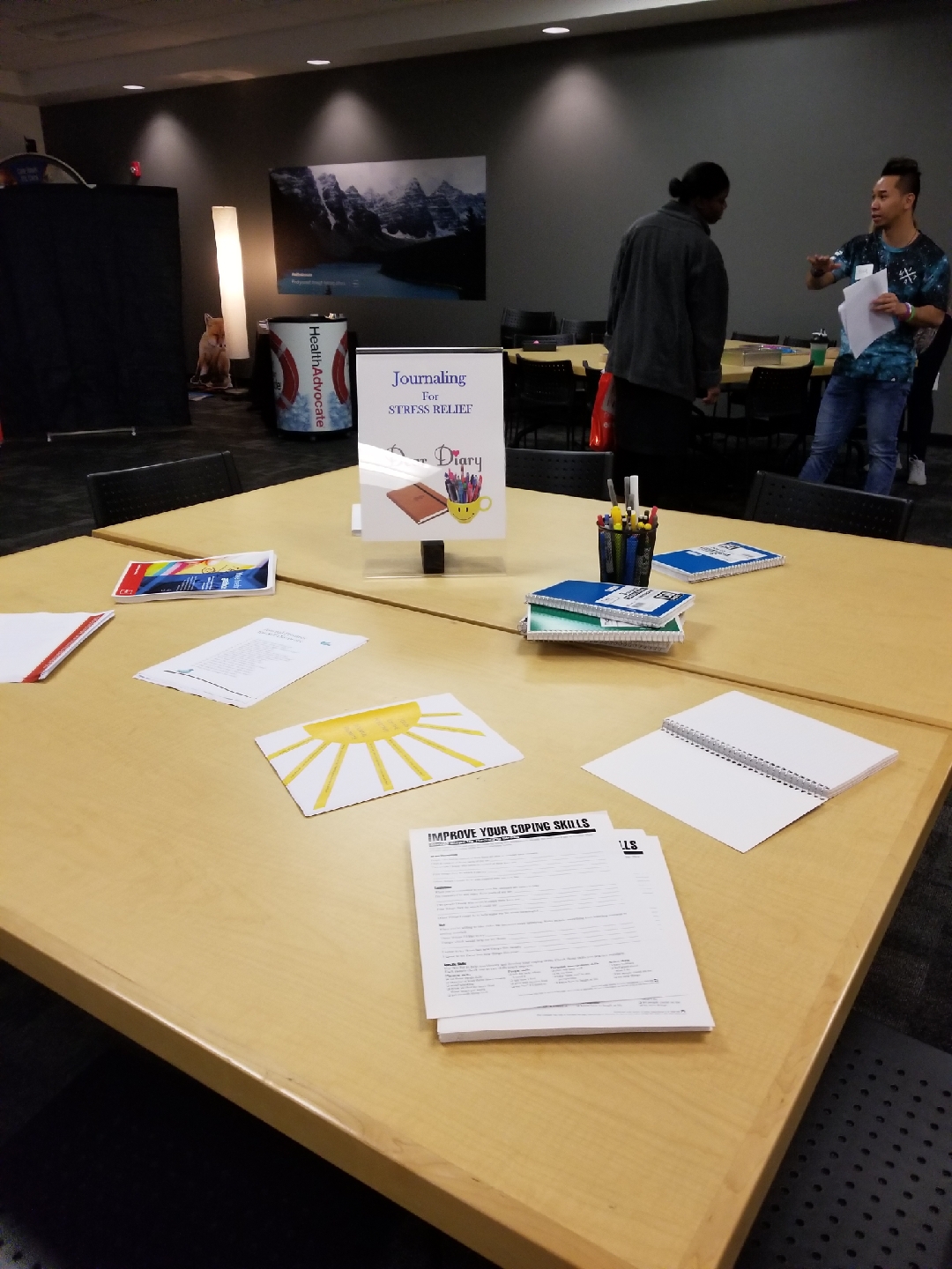 Employees were greeted and given a special gift (a stress ball, stress mints, and a booklet of stress-reducing tips) for attending. They also had an opportunity to enter into a raffle to win stress relief prizes. Wellness Coaches staffed several tables with activities ranging from “tossing stress away” (where employees wrote down their stressors, crumpled them up, and tossed them through a basketball hoop into the trash), stress relief journaling, yoga, unwinding with sand play, and coloring for stress relief. In addition, other tables featured information about drinking tea and aromatherapy for stress relief.